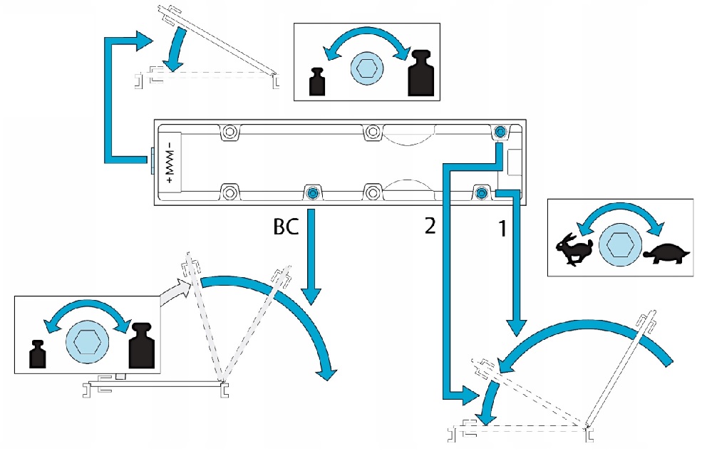 • Fokozatmentesen állítható csukási, zárási sebesség és kicsapódás gátlás (back-check) az ajtócsukó elülső oldalán elhelyezett termodinamikus szelepekkel
