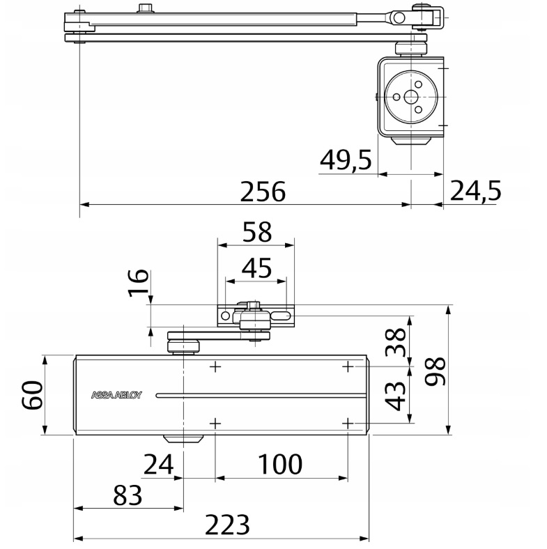 ASSA ABLOY ajtócsukó test – DC200 ajtózáró hidraulika test – behúzó kar nélkül