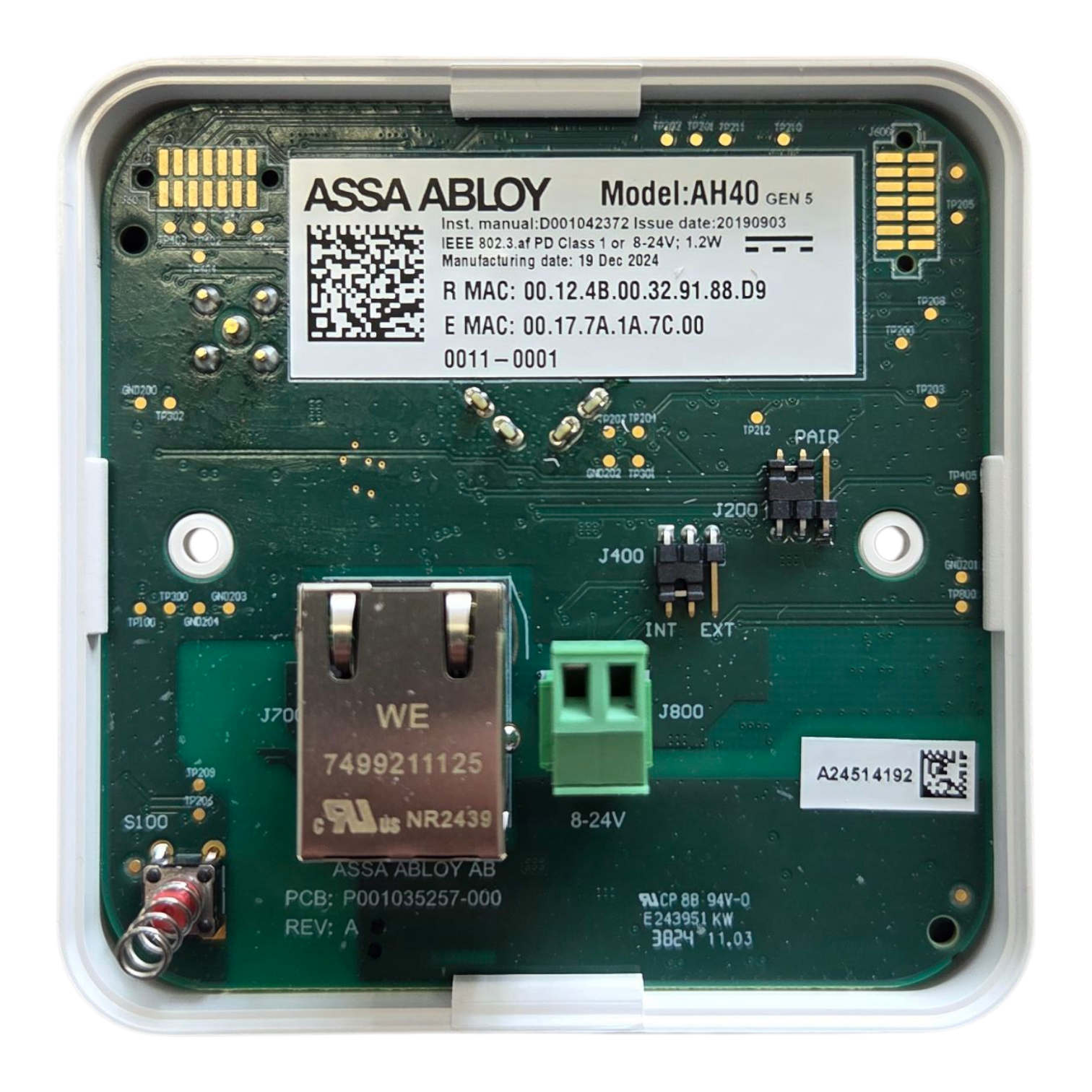 Aperio AH40 HUB 1-től 64-ig egy IP/LAN kommunikációs központ és vezeték nélküli kapcsolatot biztosítja az C100, E100 és L100 Aperio zárak és a beléptető rendszer között.