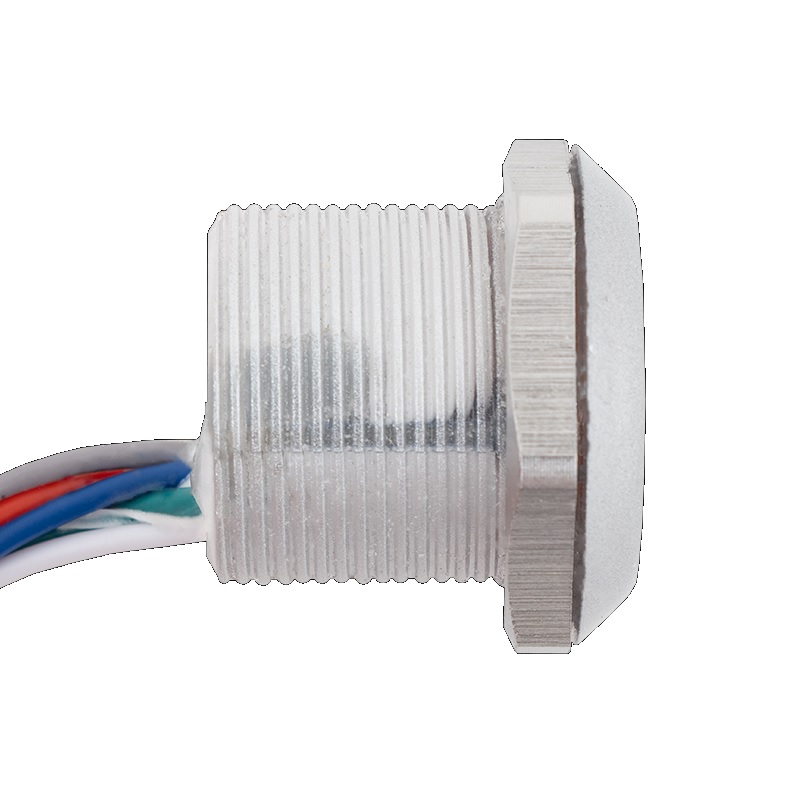 Az RS1MF olvasó rendkívül kis méretű és leginkább egy pajzs nélküli nyomógombra emlékeztet. Ez a méret nagy előny lehet szűk helyre történő telepítés, esetleg rejtetten szerelési igény esetén, bár valamilyen mértékben csökkenti az olvasási távolságot. IP68-as védettségének köszönhetően kültéri használatra is alkalmas, kialakítása lehetővé teszi a pajzzsal történő szerelést, hasonlóan a nyomógombokhoz.