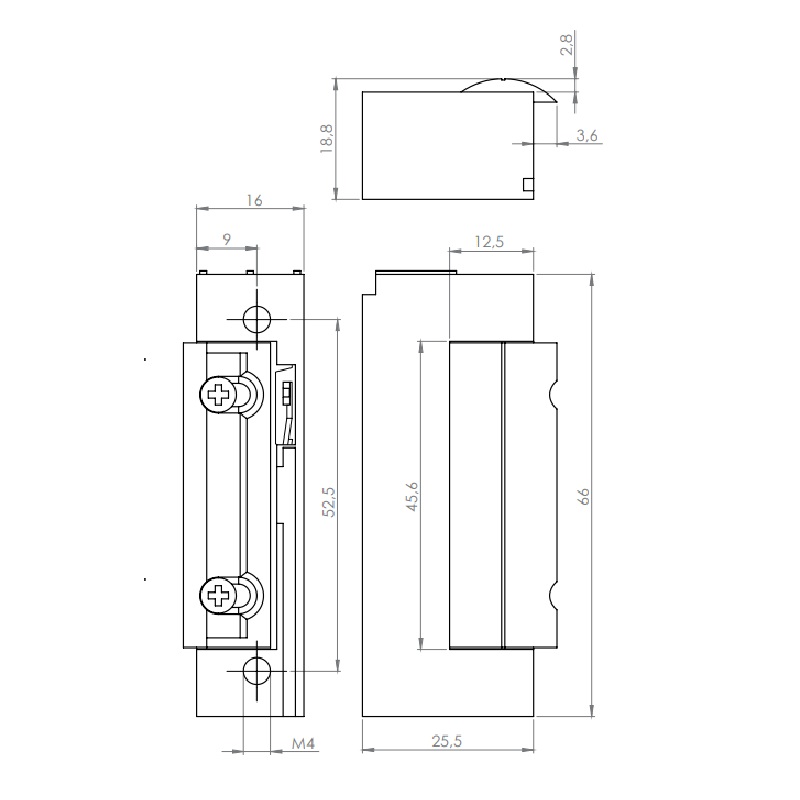 Keskeny zárfogadó: A legtöbb zárfogadó szélessége 25 mm, míg az 99-2-NDF mini kivitelű zár csak 16 mm széles. Ez keskeny ajtóprofilokhoz (pl. fa, alumínium vagy műanyag) készült.