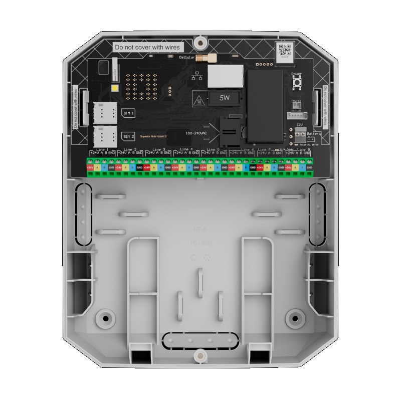 A Superior Hub Hybrid 2 biztonsági riasztórendszer vezérlőpanelje alkalmas az Ajax érzékelőktől érkező jelek fogadására és azok feldolgozására szolgál. A központ a biztonsági rendszer elsődleges eszköze és amely meghatározza a telepített riasztó működését.