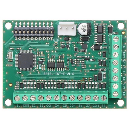 Az INT-E zónabővítő a rendszer 8 vezetékes zónával történő bővítését, valamint redőny- és rezgésérzékelők közvetlen csatlakoztatását teszi lehetővé.