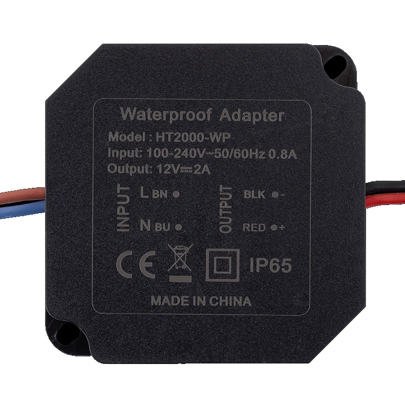 Az HT-2000-WP egy kapcsolóüzemű tápegység. Kimenete 2 ér (12V; GND), melyen 12V-os egyenfeszültséget képes kiadni stabilan, ezért alkalmas olyan helyen is, ahol változékony terhelés mellett is állandó feszültségre van szükség.