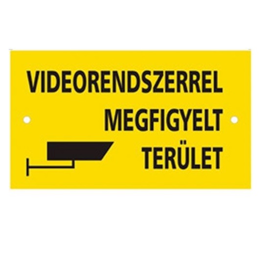 Főbb jellemzők: „VIDEORENDSZERREL MEGFIGYELT TERÜLET”; tartós kültéri kivitel